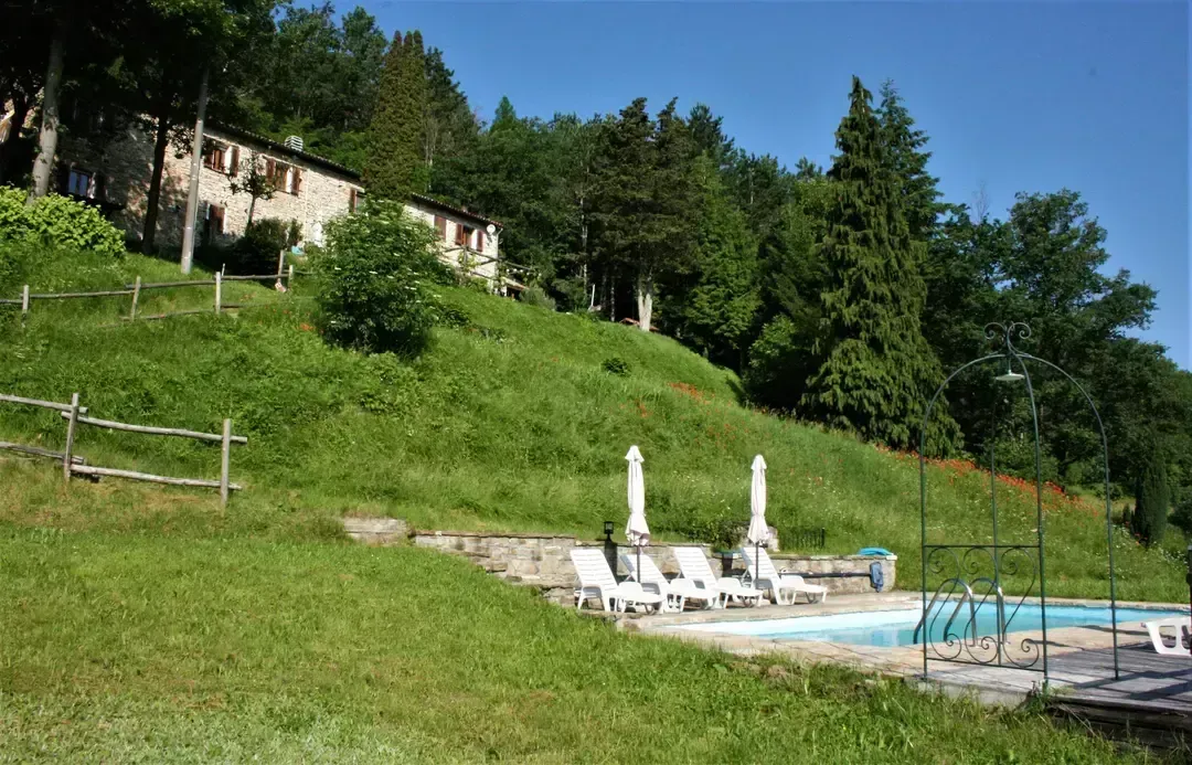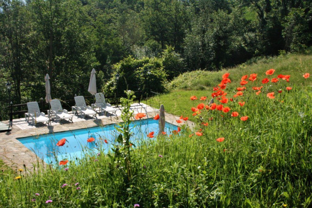 Dal giardino privato si ha una magnifica vista sulla piscina a disposizione degli ospiti.